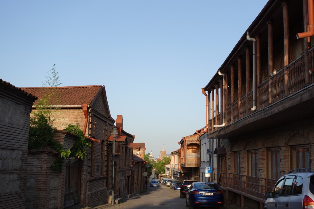 The old town with its cobbled streets and wooden balconies has been nicely preserved, too. Sitting down at a café table, I decided tonight was the night for some khinkali. These Georgian dumplings are especially delicious: inside the dough you find not only filling, but also a little soup. There is a whole technique to eating them: first, wait for them to cool down slightly (a big test of patience when you can see them in front of you). Then, picking the khinkali up by the part where the dough is bunched together, called the kudi (tail), bite a little hole and suck out the soup. And finally, eat the filling with the rest of the dough (apart from the kudi, which you leave on your plate as a record of the number of khinkali you’ve eaten…).