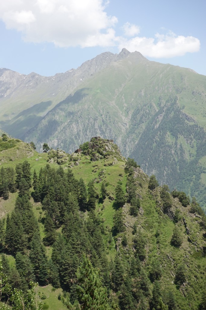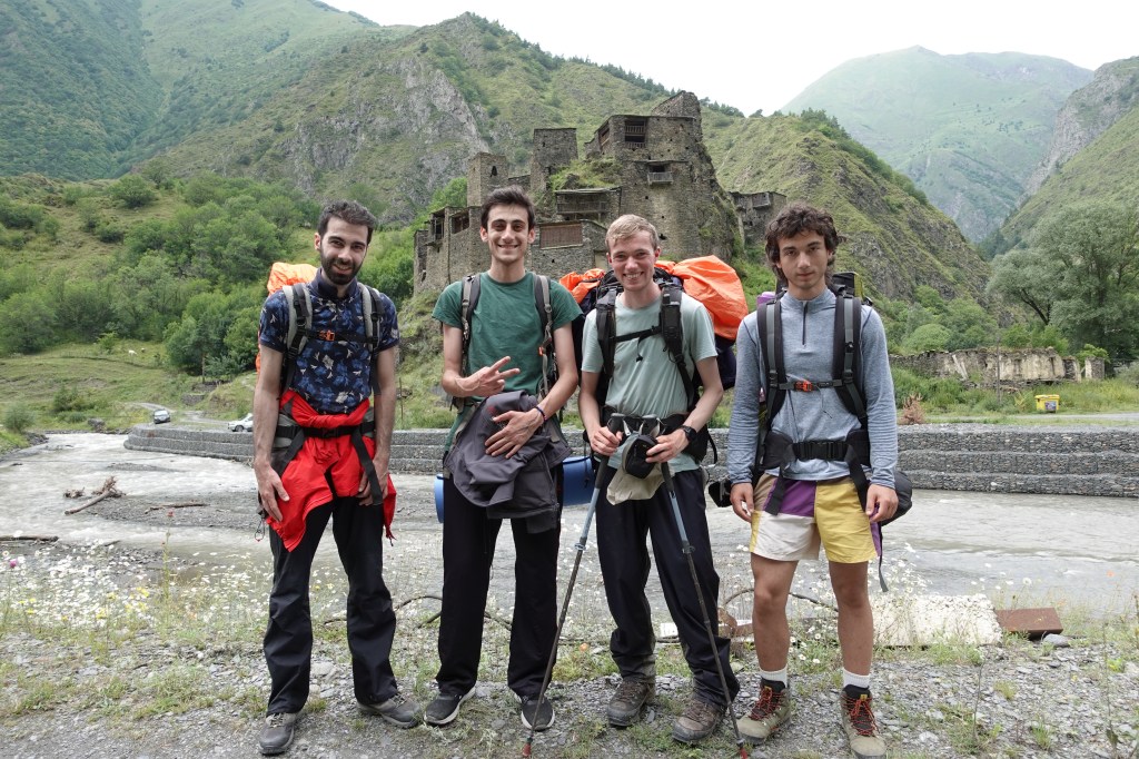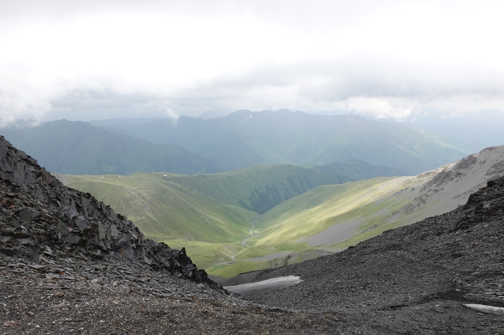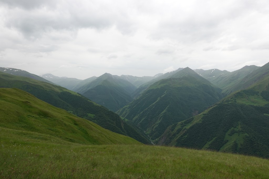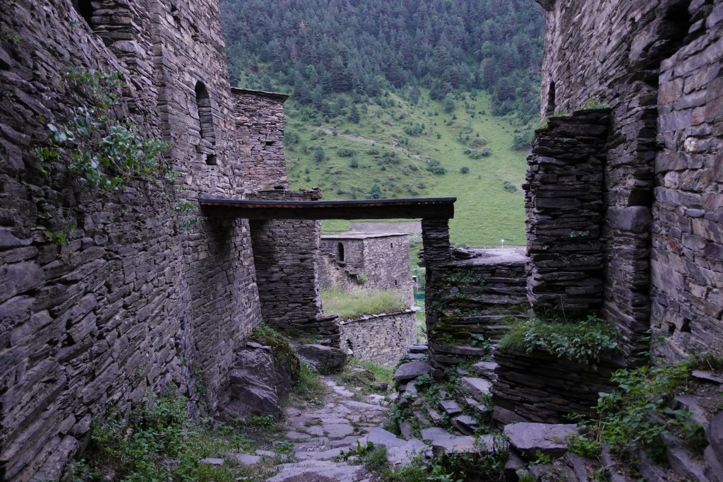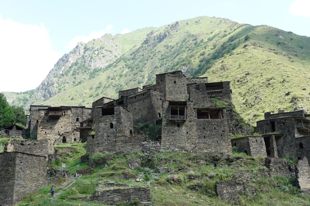 The landscapes of Tusheti and Khevshureti seemed wilder than those of Svaneti, but at the same time the peaks felt somehow less threatening. The people were certainly just as welcoming as the Svans: take the example of the man who drove me over the pass into Tusheti, who spontaneously invited me to his house for lunch before we set off, or the border police officer who, having had me fill in his forms, was very keen for me to meet his giant pet rabbit. On the last day, as I approached the fortified settlement of Shatili, I passed a group of young Georgian hikers who were brewing up beside the path, and they invited me to have some coffee with them (they offered me tea instead when I told them I was from England, of course…). We got talking and it turned out they were also going as far as Shatili that day, so we hiked the final 10km together. They were very keen I should learn some Georgian along with my Russian (I’m trying, I promise!), and it struck me how adamant they all were that they wanted to dedicate their careers post-graduation to the service of their own country, rather than looking for work abroad.